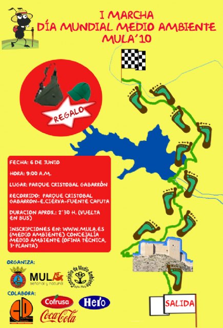 El próximo domingo 6 de junio tendrá lugar en Mula la I Marcha por el Día Mundial del Medio Ambiente. El recorrido propuesto desde la Concejalía de Medio Ambiente consta de un variado y atractivo recorrido que combina paisaje urbano y natural.
