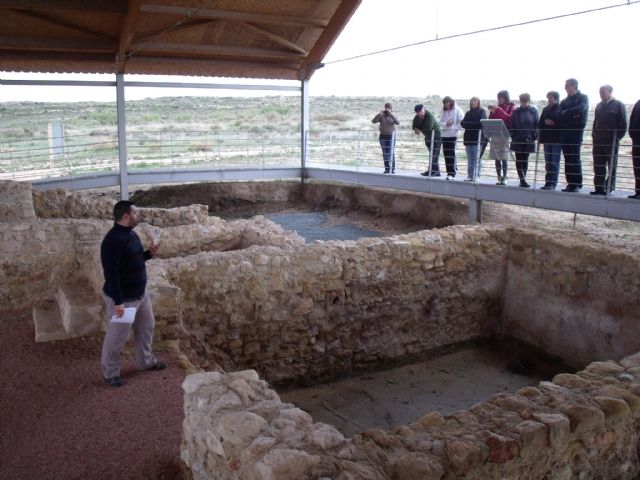 Los asistentes pudieron disfrutar de la visita al yacimiento arqueológico romano de “Los Villaricos”, situado en los alrededores de la ciudad. Después se trasladaron al centro de Mula para visitar el Museo Monográfico de “El Cigarralejo”, dedicado a este yacimiento íbero situado muy cerca de Mula. Ambos lugares fueron magníficamente explicados por José Antonio González. A continuación callejeamos por las calles del casco histórico de Mula, uno de los mejores, si no el mejor, de la Región de Murcia. En la Plaza del Ayuntamiento pudimos degustar productos típicos en un mercadillo artesanal. Desde allí nos trasladamos a comer a un restaurante situado también en el centro de Mula. La tarde fue desapacible por el viento y la lluvia, pero ello no impidió que visitásemos el imponente castillo de Mula, perfectamente explicado por nuestro compañero José Antonio, y los más atrevidos desafiaron las inclemencias meteorológicas y subieron hasta la misma puerta de entrada. Por último, visitamos la bonita iglesia del Monasterio de la Encarnación, para regresar después a nuestro punto de partida, Totana.
