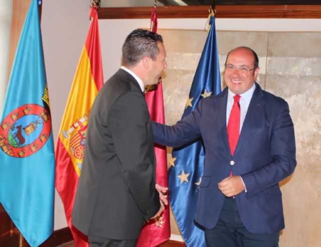 El presidente de la Comunidad, Pedro Antonio Sánchez, se reunió hoy en el Palacio de San Esteban con el alcalde de Mula, Juan Jesús Moreno, con quien analizó diversos asuntos de importancia para el municipio relacionados con el turismo, la sanidad o el castillo de Mula.