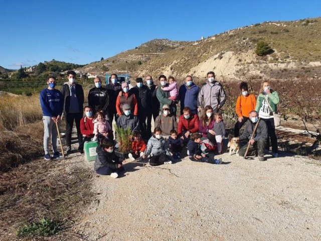Cerca de una veintena de personas participaban en esta actividad mediante la que se ha plantado más de 300 ejemplares de pino y diversas especies autóctonas.