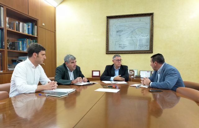 El presidente de la Confederación Hidrográfica del Segura, Mario Urrea, acompañado por el comisario de aguas, Javier García y del jefe del área del Regadío Tradicional, Miguel Abellán, han mantenido una reunión de trabajo con el alcalde de Mula, Juan Jesús Moreno.