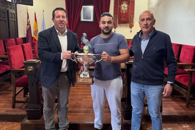 El alcalde de Mula, Juan Jesús Moreno, y el concejal de Deportes, Vicente López, han recibido en el Ayuntamiento al muleño Juan Pedro Boluda Susarte, recientemente proclamado Campeón de España Absoluto en la modalidad de Palomos de Raza, alcanzando la máxima distinción nacional en esta disciplina.