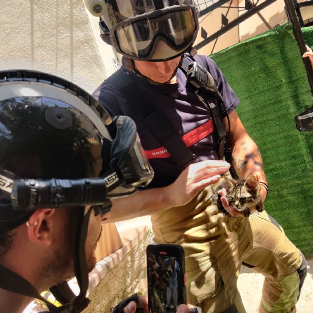 Los bomberos del CEIS han rescatado a este gatito de una cloaca a donde lo había arrojado un desaprensivo .