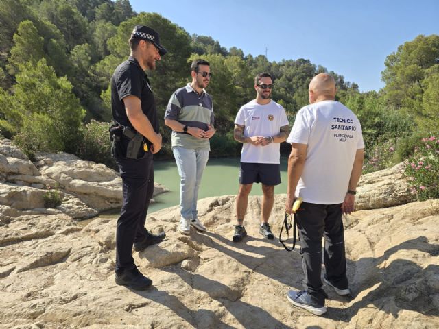 El concejal de Seguridad Ciudadana, Diego Boluda, ha presentado el operativo acompañado por el jefe de Policía Local, Salvador Martínez y el Jefe d Protección Civil, Pedro J. Buendía. El dispositivo contará con socorrista en las zonas de baño natural, que junto con patrullas de Policía Local y Protección Civil, reforzarán la seguridad de los visitantes y bañistas, protegiendo el entorno natural.
