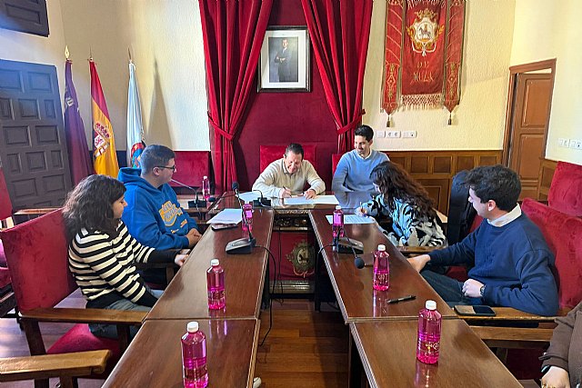 El alcalde de Mula, Juan Jesús Moreno, junto al concejal de Juventud, Toni Ruiz, ha mantenido una reunión de trabajo con la nueva ejecutiva del Consejo Local de la Juventud de Mula, encabezada por su presidenta, Lucía Higelmo, para conocer las principales líneas de actuación y proyectos previstos para 2026.