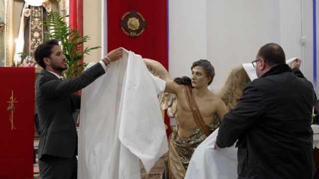 En este sentido, recordó que esta actuación se suma a otras recientes, como la Virgen del Primer Dolor de Cartagena, la Virgen de la Amargura de Murcia o el conjunto del Calvario del Cristo del Perdón, "configurando una línea de trabajo clara impulsada por el Gobierno regional en defensa del patrimonio cofrade de la Región".